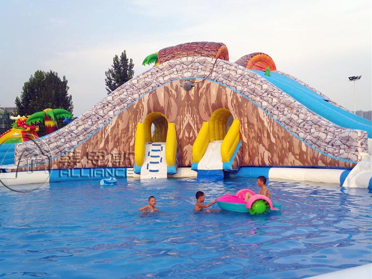 主要設(shè)備: 龍頭充氣水滑梯、叢林探險(xiǎn)充氣水上樂園、怪獸來襲充氣水滑梯、沖浪充氣滑梯搭配1個(gè)支架游泳池、龍鯊充氣水上樂園、水上沖關(guān)設(shè)備。